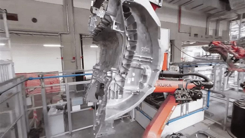 Le immagini più intriganti si vedono quando vediamo le gigantesche presse per lo stampaggio che realizzano le portiere e altre parti dell'auto. Si può vedere la macchina di fusione IDRA da 6.000 tonnellate mentre realizza i Giga Castings, ovvero i pezzi unici che compongono il sottoscocca anteriore e posteriore della Model Y.