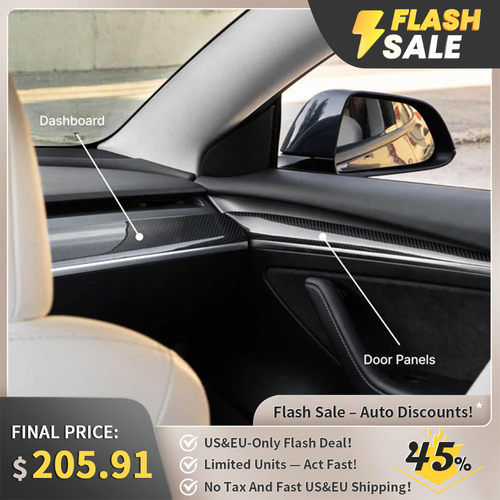 Overstock EU – Set di finiture per cruscotto e portiere in carbonio per Model 3/Y (2021–2024)