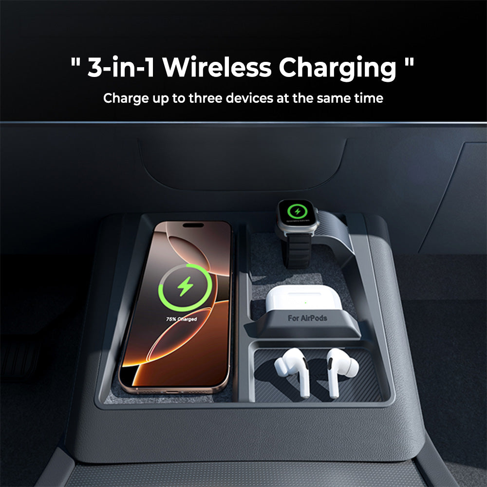 3-in-1 Wireless Charging Organizer for Tesla Model 3 Highland & Model Y Juniper