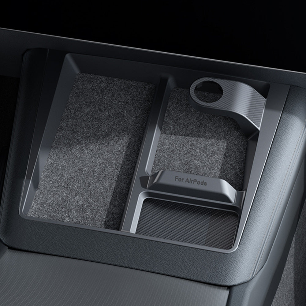 Featuring a sleek carbon fiber texture, this console organizer adds a subtle performance-inspired look to your cabin. It blends naturally with Tesla’s modern interior while also helping protect the original felt liner from dust, spills, and everyday wear.