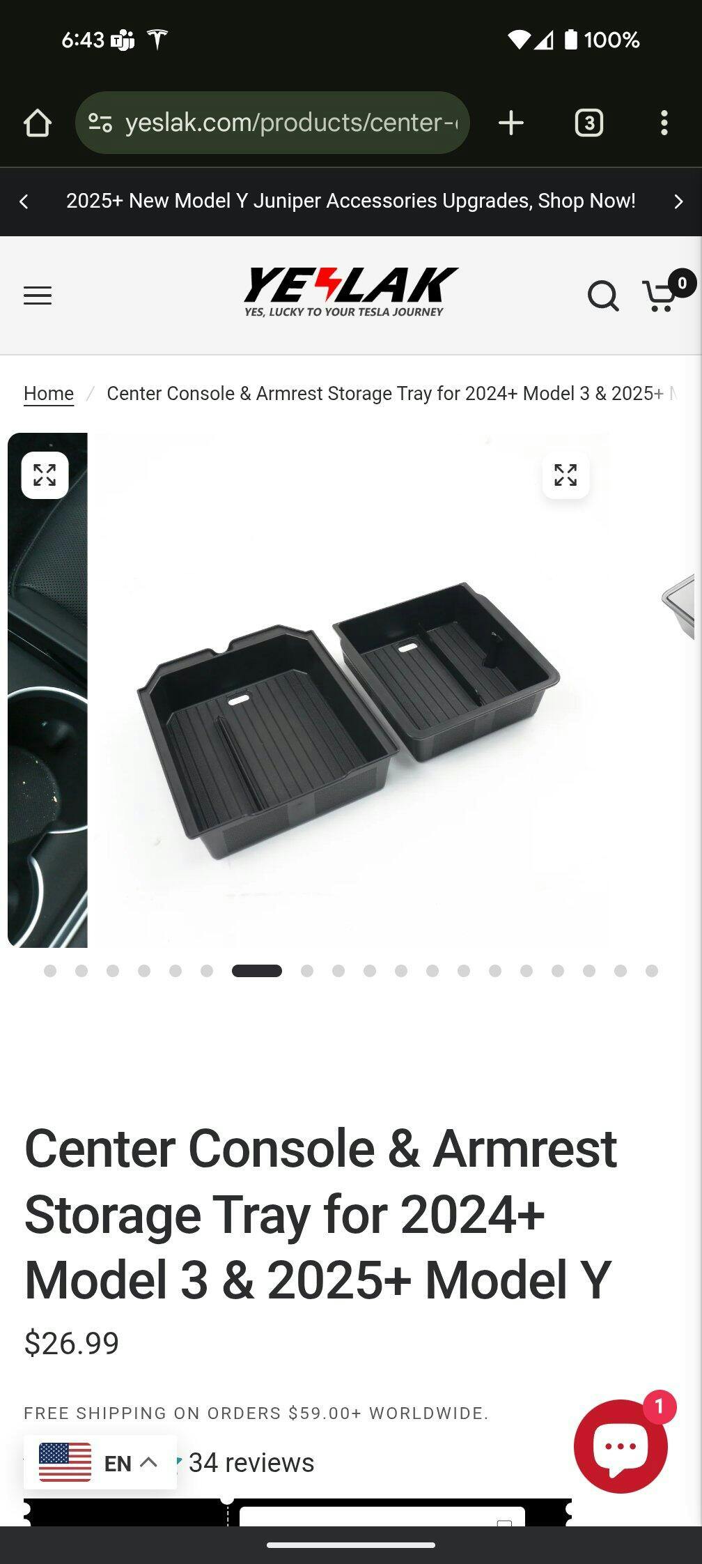 Center Console & Armrest Storage Tray for 2024+ Model 3 & 2025+ Model Y