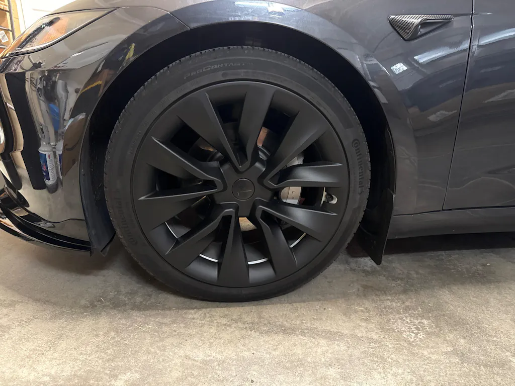 Protect your Model 3 Highland 19'' Nova wheels with our OEM matte black wheel covers. These covers seamlessly integrate with your car's exterior, enhancing your wheels' appearance and giving them a sleek, stylish look. Custom-designed to extend over the wheel rims, they protect your wheels from curb rash and can even conceal existing damage, eliminating the need for buffing, sanding, or painting.