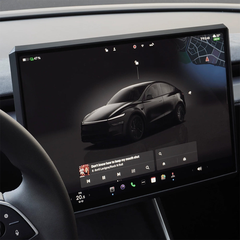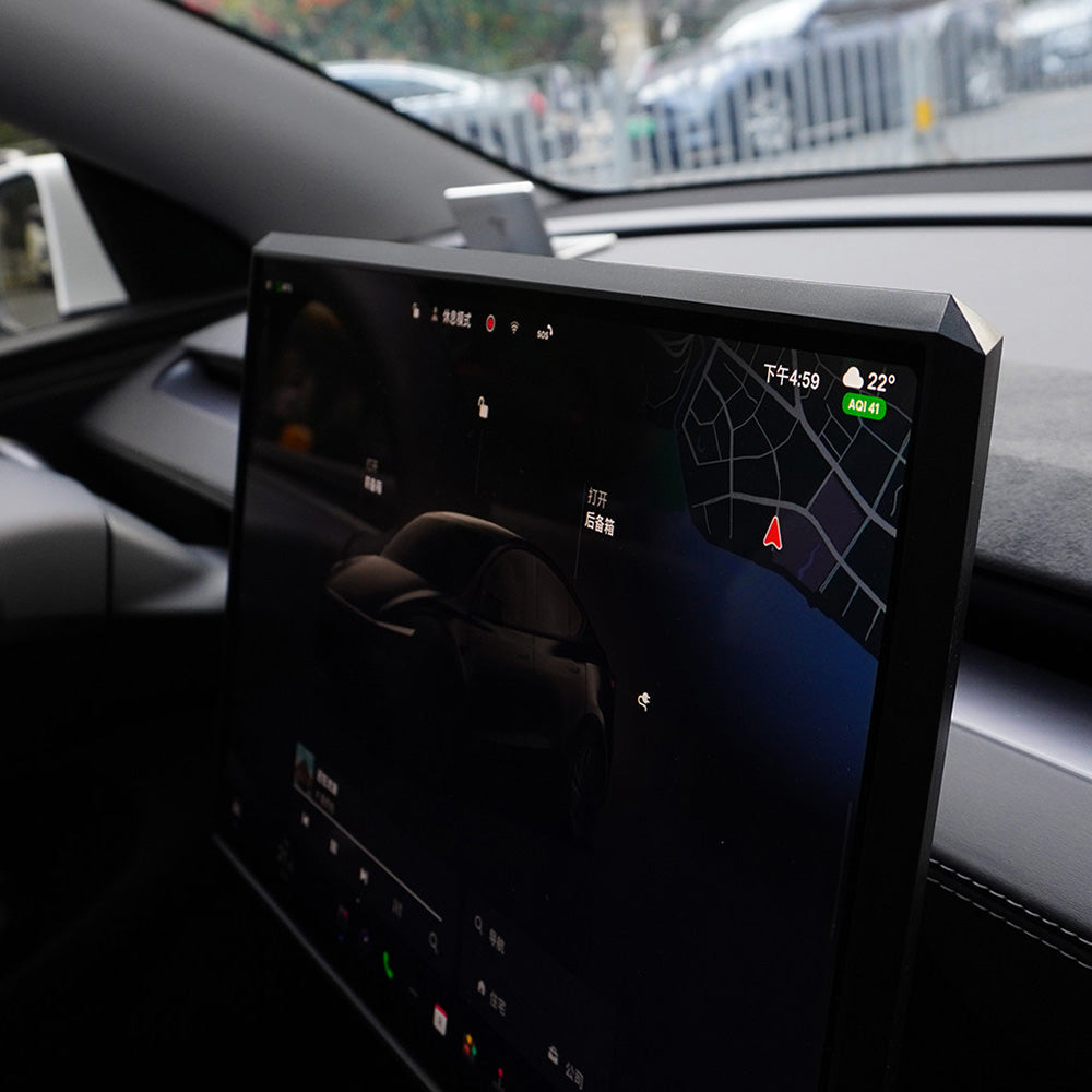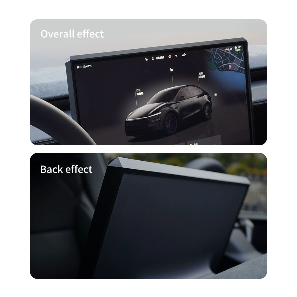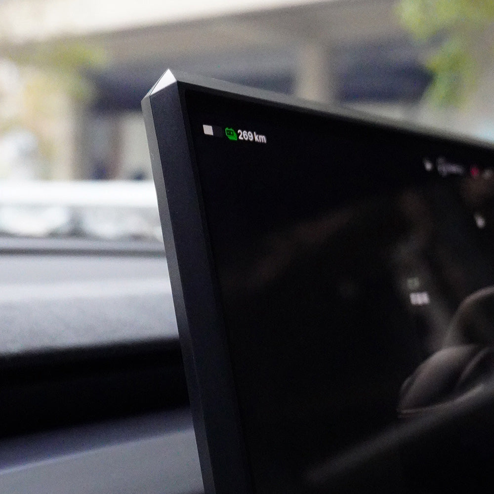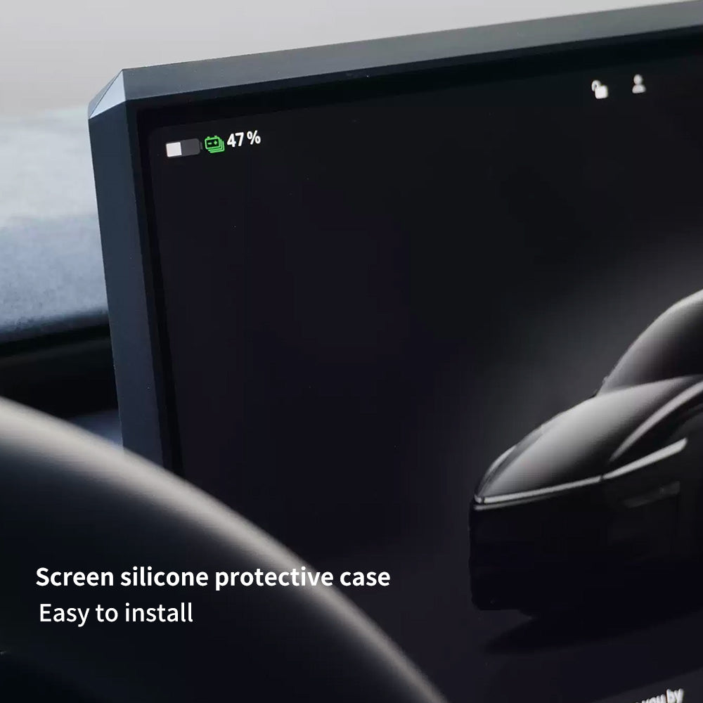 Upgrade your Tesla interior with this angular, Cybertruck-inspired silicone screen frame that combines reliable protection with a futuristic look. Designed specifically for the 2025+ Model Y Juniper and 2024+ Model 3 Highland with 15.4-inch displays, this custom silicone bezel fits snugly around the center display with an OEM-style finish. It protects screen edges from scratches, bumps, and daily wear, while its sharp, modern lines give the dashboard a cleaner, more sophisticated appearance. The angular design adds a subtle cyber-inspired touch that blends seamlessly with Tesla’s minimalist interior, making the cabin feel more refined and visually complete. Soft yet durable liquid silicone cushions minor impacts without adding bulk, and the tool-free snap-on installation makes it a quick, effortless upgrade for both protection and style.