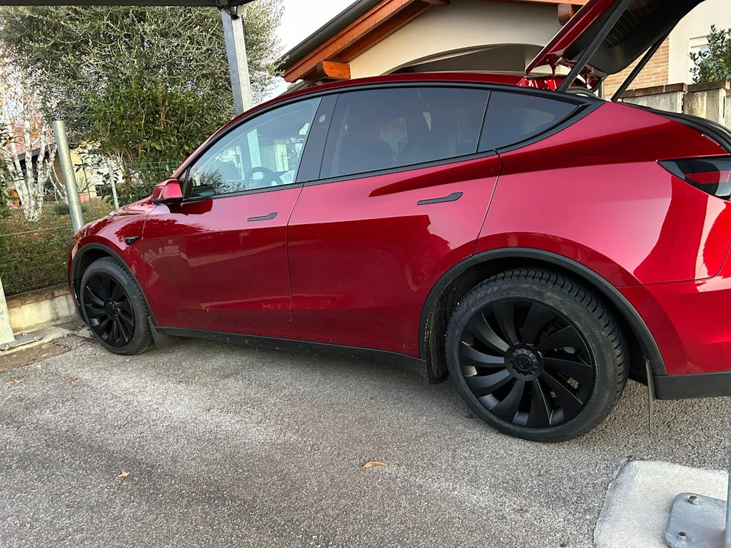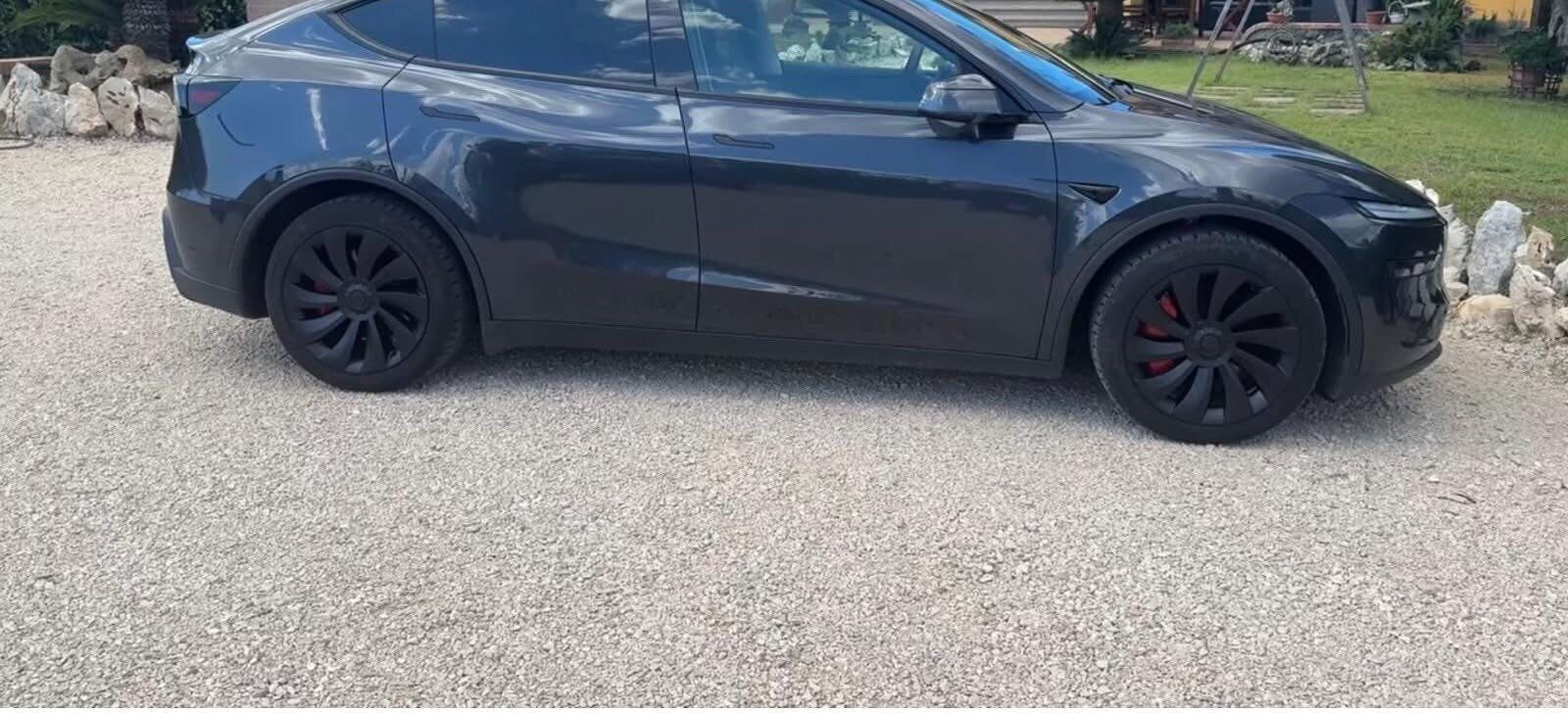 Upgrade your 2026+ Tesla Model Y Juniper with these custom-fit 19'' Uberturbine-style wheel covers, designed to transform your factory Crossflow wheels into a sleek Performance look. Inspired by Tesla’s iconic Performance Uberturbine design, these covers not only enhance style but also improve aerodynamics for better battery efficiency and extended driving range.