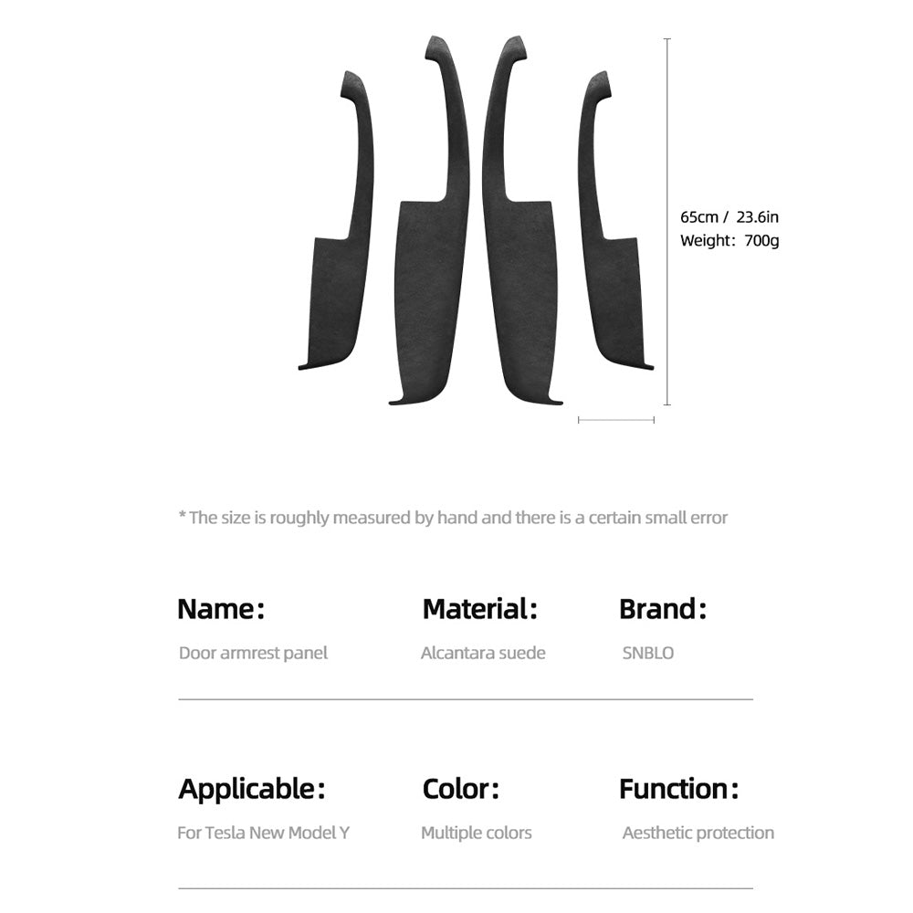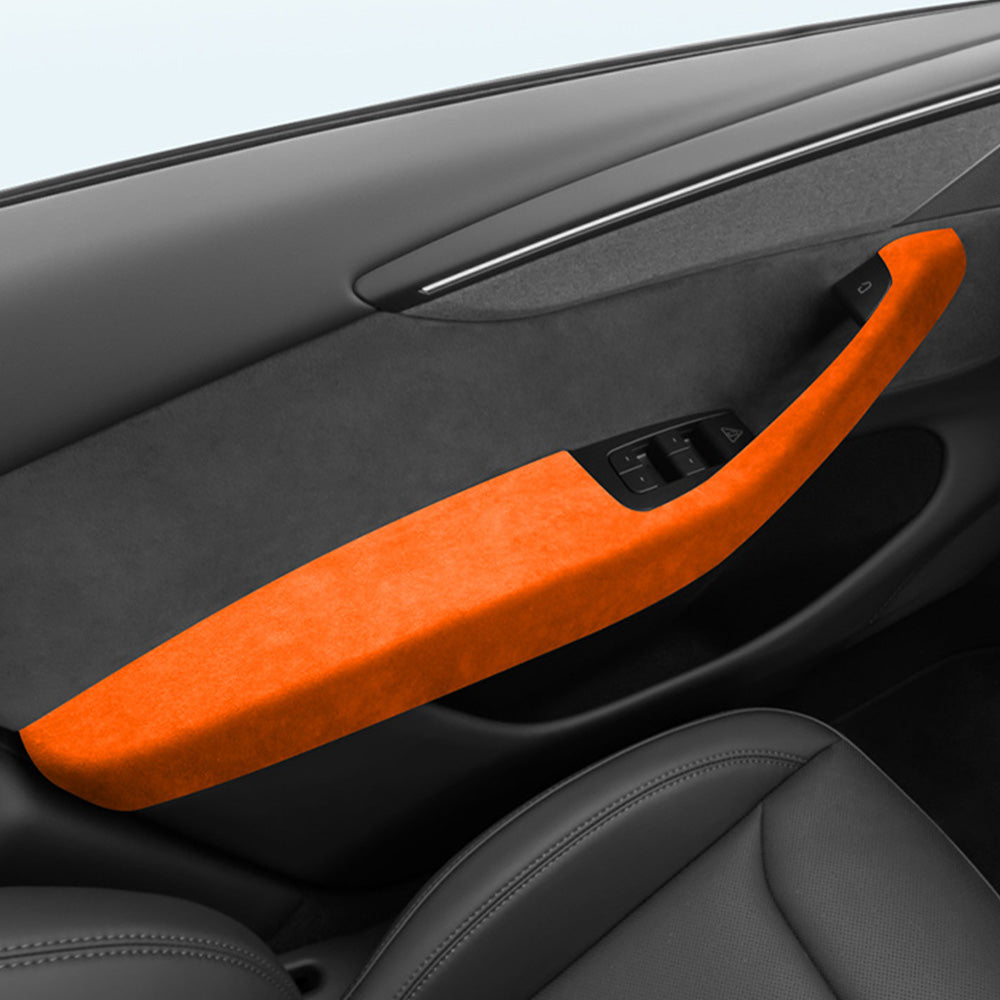Each Tesla Model Y door armrest cover is crafted from high-grade Alcantara—renowned for its luxurious texture, durability, and timeless appeal. More than just protection, these covers elevate your cabin’s aesthetic, offering a smooth, suede-like feel every time you rest your arm.