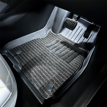 The 2017-2024 Model 3 all-weather mats are made of TPE material and are durable, odorless, non-toxic, and environmentally friendly, offering the same high standards as Tesla OEM quality.